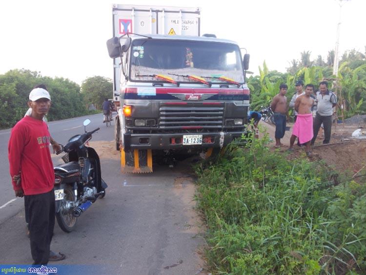 ខេត្តកណ្តាល ៖ រថយន្តកុងតឺន័ររបស់ក្រុមហ៊ុនមួយ ពណ៌ឈាមជ្រូកលាយស ពាក់ស្លាកលេខបាត់ដំបង 3A-1236 ខណៈបើកលឿនជ្រុលទៅបុកម៉ូតូមា៉កឌ្រីមសង់សេ១២៥ ស៊េរី២០០៨ ពណ៌ខ្មៅ ពាក់ស្លាកលេខក្រុងព្រះសីហនុ 1A-9523 កៀបជាប់ក្រោមរថយន្តអូសប្រមាណជិត២០០ម៉ែត្រ បណ្តាលឱ្យអ្នកបើកម៉ូតូរលាត់ដៃជើង បាក់ប្រអប់ជើងខាងស្តាំរងរបួសធ្ងន់ ត្រូវបញ្ជូនទៅសង្គ្រោះនៅមន្ទីរពេទ្យក្នុងរាជធានីភ្នំពេញ ។