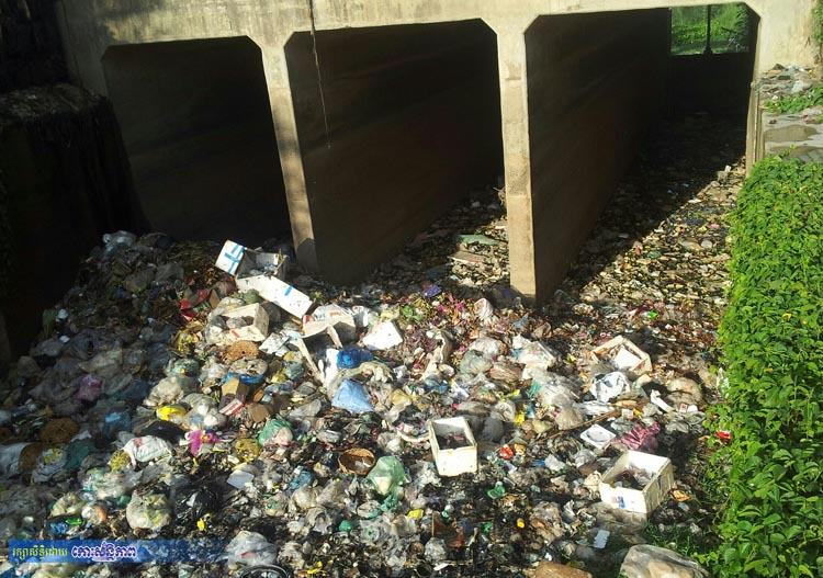 ខេត្តកណ្ដាល៖ សំរាមនិងកាកសំណល់ជាច្រើនត្រូវបានក្រុមអាជីវករអ្នករកស៊ីនៅផ្សារព្រែកថ្មីនាំគ្នាយកទៅចាក់ចោលពាសវាលពាសកាល គំនរគរឡើងដូចភ្នំនៅខាងក្រោមស្ពានព្រែកថ្មីស្ថិតក្នុងភូមិគគីធំ ឃុំគគីរធំ ស្រុកកៀនស្វាយ។