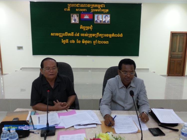 ខេត្តកំពង់ធំ៖ នៅសាលប្រជុំសាលាខេត្តកាលពីថ្ងៃទី៦ មិថុនា ២០១៣ មានការរៀបចំកិច្ចប្រជុំសាមញ្ញលើកទី៤៩ របស់ក្រុមប្រឹក្សាខេត្ត ក្រោមអធិបតីភាពលោកណាំ ទុំ ទីប្រឹក្សាផ្ទាល់សម្ដេចអគ្គមហាសេនាបតីតេជោហ៊ុន សែន និងជាប្រធានក្រុមប្រឹក្សាខេត្ត លោកអ៊ុត សំអន ទីប្រឹក្សាសម្ដេចអគ្គមហាសេនាបតីតេជោហ៊ុន សែន