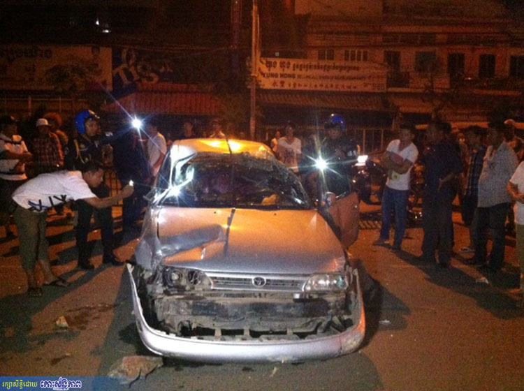 បុរសម្នាក់បើករថយន្តកូរ៉ូឡាទៅបុករបាំងថ្មចែកទ្រូងផ្លូវបាក់អស់ ៧កង់