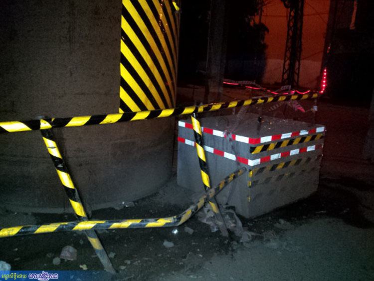 រថយន្តហ្វតម្ចាស់លក់មួយភាំងជ្រុលទៅបុកបង្កាន់ដៃចំណាំងផ្លាតធ្វើស្ពានថ្មីក្រោមស្ពានជ្រោយចង្វា