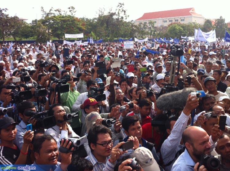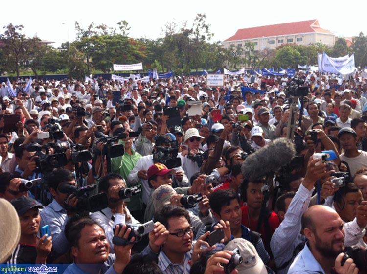 ប្រជាពលរដ្ឋ សិស្សានុសិស្ស មន្ត្រីរាជការ និងព្រះសង្ឃនៅតាមបណ្តាខេត្ត-រាជធានី រាប់ម៉ឺននាក់ រួមមាន ខេត្តកំពង់ឆ្នាំង ខេត្តកំពត, កំពង់ចាម, ស្ទឹងត្រែង, ក្រចេះ, ក្រុងប៉ោយប៉ែត, សិរីសោភ័ណ (បន្ទាយមានជ័យ), សៀមរាប, បាត់ដំបង, ប៉ៃលិន, រតនគិរី, មណ្ឌលគិរី, ស្វាយរៀង, ព្រៃវែង, កំពង់ធំ, ឧត្តរមានជ័យ, ព្រះវិហារ, ព្រះសីហនុ, កំពង់ស្ពឺ និងរាជធានីភ្នំពេញ ព្រមទាំងនិស្សិតនៅសាកលវិទ្យាល័យភ្នំពេញអន្តរជាតិ (PPIU ក្នុងរាជធានីភ្នំពេញ) កំពុងធ្វើមហាបាតុកម្មអហិង្សាប្រឆាំងតវ៉ាចំពោះការលើកឡើងរបស់លោកកឹម សុខា ប្រធានគណបក្សសង្គ្រោះជាតិដែលថា គុកទួលស្លែង គឺជាសិប្បនិមិត្ត ហើយថា ខ្មែរក្រហមមិនសម្លាប់មនុស្ស និងមិនធ្វើទារុណកម្ម ។