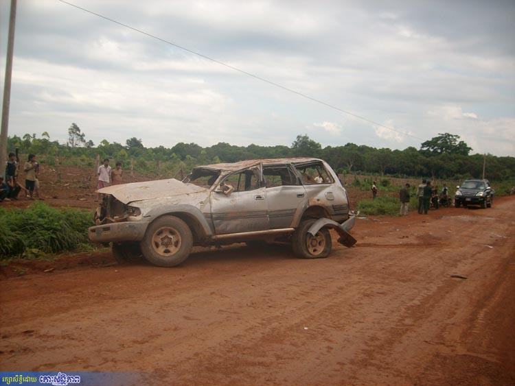 ខេត្តរតនគិរី ៖ រថយន្តដឹកឈើធ្នង់មួយគ្រឿងម៉ាកឡង់គ្រីស្ស័រពណ៌ទឹកប្រាក់បានក្រឡាប់់២-៣ត្រឡប់ ខណៈពេលបើកគេចពីការតាមប្រមាញ់របស់សមត្ថកិច្ច បណ្តាលឱ្យព្រូរថយន្តម្នាក់ស្លាប់កៀបជាប់ក្នុងរថយន្ត ចំណែកអ្នកបើកបររងរបួសធ្ងន់បញ្ជូនទៅសង្គ្រោះនៅមន្ទីរពេទ្យ។ ហេតុការណ៍នេះបានកើតឡើងកាលពីវេលាម៉ោង៦ និង៣០នាទីព្រឹក ថ្ងៃទី៩ មិថុនា ២០១៣ នៅចំណុចភូមិកាឡៃ១ ឃុំកាឡៃ ស្រុកអូរជុំ។