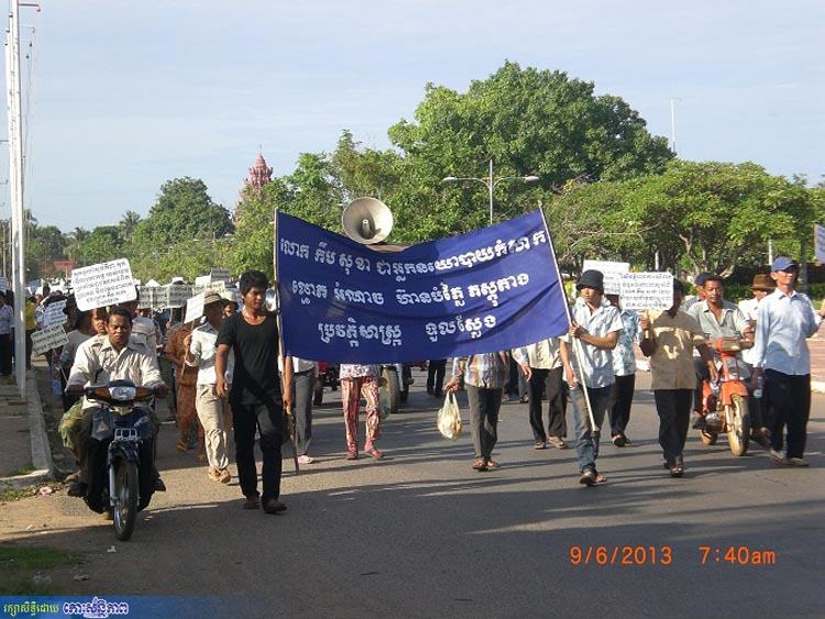 ខេត្តកំពង់ឆ្នាំង ៖ ក្បួនដង្ហែបាតុកម្មប្រឆាំងលោកកឹម សុខា ប្រធានស្តីទីគណបក្សសង្គ្រោះជាតិបានបញ្ចប់ហើយនាវេលាម៉ោង៩ និង២០នាទីព្រឹក ថ្ងៃទី៩ មិថុនា ២០១៣ នេះ បន្ទាប់ពីប្រជាពលរដ្ឋប្រមាណ៣.០០០នាក់ក្នុងសង្កាត់៤ ក្រុងកំពង់ឆ្នាំងបានហែក្បួនបាតុកម្មចេញពីតារាងបាល់មុខសាលាខេត្តឆ្ពោះទៅផ្សារលើ រួចហែប្រទក្សិណជុំវិញទីស្នាក់ការគណបក្សសង្គ្រោះជាតិដើម្បីទាមទារឱ្យលោកកឹម សុខា