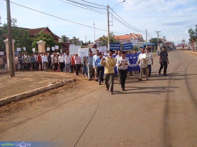 ក្រុមចុងក្រោយមានបាតុករ១.១០០នាក់ដង្ហែជុំវិញសាលាស្រុកបាភ្នំរួចមកជួបជុំនៅតារាងបាល់មុខសាលាស្រុកតែម្តង៕
