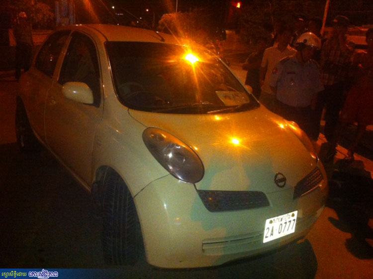 រថយន្តមីនីម៉ាតបើកបុករបាំងថ្មចែកទ្រូងផ្លូវបាក់អស់ ៥កង់ មុខស្ថានទូតវៀតណាម