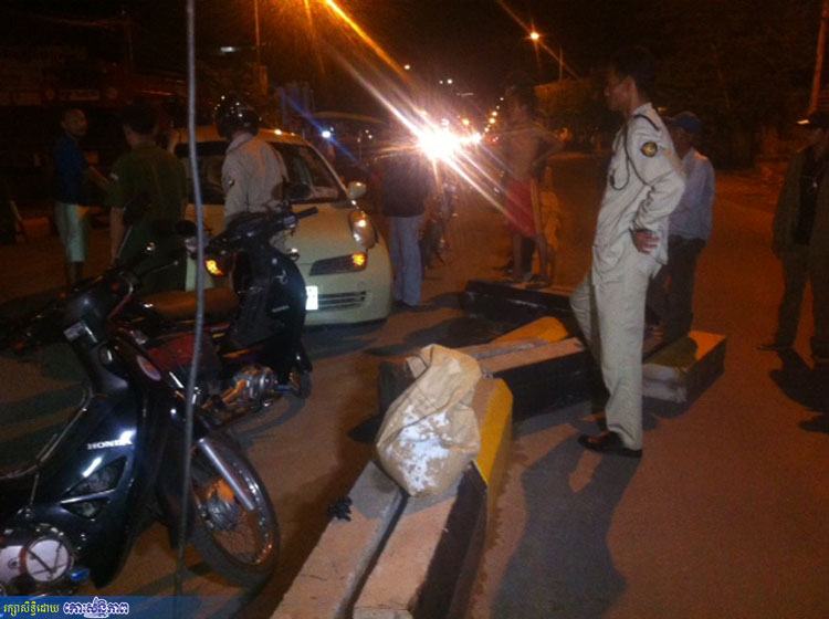 រាជធានីភ្នំពេញ ៖ របាំងថ្មចំនួន ៥កង់ នៅមុខស្ថានទូតវៀតណាម ត្រូវបាក់ខូចខាតទាំងស្រុង ខណៈដែលបុរសម្នាក់អាយុប្រហែល ៤០ឆ្នាំ បើករថយន្តមីនីម៉ាត ពណ៌សម្បកពងមាន់ ពាក់ស្លាកលេខស្វាយរៀង 2A-0777 បើកទៅបុកពេញទំហឹងតែម្តង កាលពីវេលាម៉ោង ១២ យប់ថ្ងៃទី១០ មិថុនា ២០១៣ ស្ថិតនៅបណ្តោយមហាវិថីព្រះមុនីវង្ស កែងផ្លូវ៣២ ក្នុងសង្កាត់បឹងត្របែក ខណ្ឌចំការមន ។