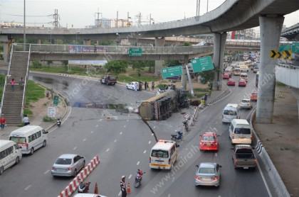 អាជ្ញាធរបានប្រកាសអាសន្នដល់ប្រជាជនដែលធ្វើដំណើរតាមដងផ្លូវខាងលើត្រូវប្រុងប្រយ័ត្ននៅពេលបើកបរ ព្រោះអាចឱ្យរអិលបាន។ អាជ្ញាធរផ្នែកស៊ើបអង្កេតប្រាប់ថា រថយន្ដនេះបានចេញពីបរិវេណច្រកផ្លូវនុនបុរី ឆ្ពោះទៅខេត្ដណាខនយុក ដោយផ្ទុកប្រេងចំណុះ៣៦.០០០លីត្រ ៕
