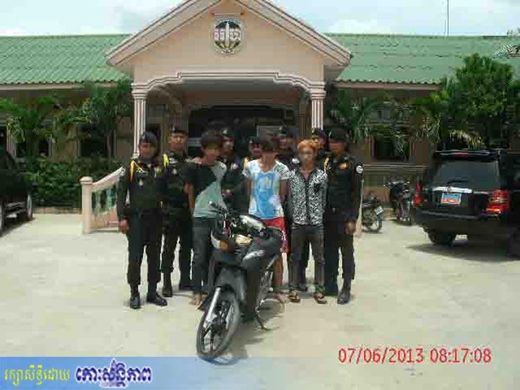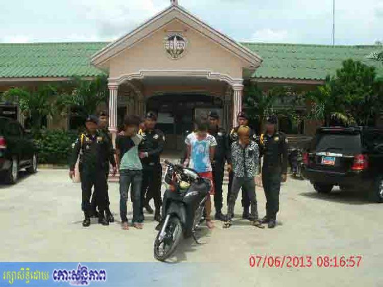 ក្រោយពីមានពាក្យបណ្ដឹងពីជនរងគ្រោះជាម្ចាស់ម៉ូតូ សមត្ថកិច្ចបានតាមចាប់ឃាត់ខ្លួនជនសង្ស័យបាន៣ នាក់ ១.ឈ្មោះម៉េង ខេម ភេទប្រុស អាយុ១៨ឆ្នាំ មានទីលំនៅភូមិក្បាលស្ពាន១ ២.ឈ្មោះឡេង ប៊ុធឿន ហៅតយ ភេទប្រុស អាយុ ២០ឆ្នាំ ៣.ឈ្មោះប៊ុន ពៅ ហៅយួន ភេទប្រុស អាយុ២១ឆ្នាំ ៕