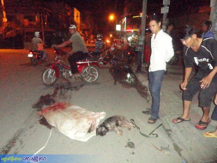 ប្រភពព័ត៌មានពីសមត្ថកិច្ចឱ្យដឹងថា ជនទាំងពីរនាក់នោះ ជាជនសង្ស័យដើរទាក់ឆ្កែពេលយប់ ហើយជិះម៉ូតូដឹកឆ្កែបំណងយកទៅលក់ តែពេលមកដល់ចំណុចខាងលើ ក៏ត្រូវរថយន្តមួយគ្រឿងបុកពីក្រោយ បណ្តាលឱ្យរងរបួស ហើយដោយសារខ្លាចសមត្ថកិច្ចមកទាន់ក៏នាំគ្នារត់គេចខ្លួនទៅបន្សល់ទុកតែវត្ថុតាងនៅកន្លែងកើតេហតុប៉ុណ្ណោះ ។