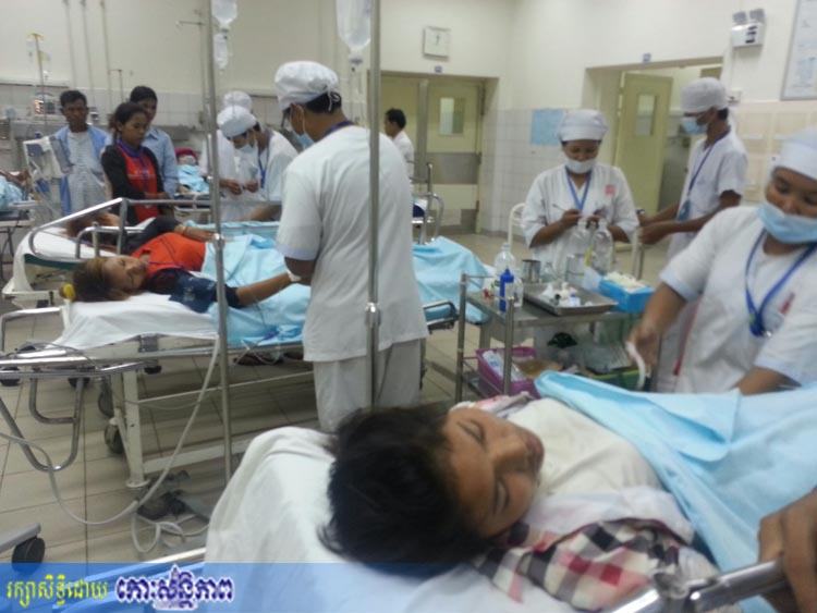 ទុស្សេខ្សែភ្លើងក្នុងរោងចក្រ យកធុងហ្គាសបាញ់ពន្លត់ កម្មករផ្អើលឆោឡោដួលសន្លប់១៥នាក់