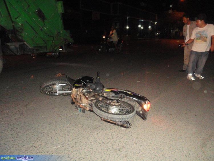 សាក្សីនិយាយថា មុនពេលកើតហេតុ រថយន្ដប្រមូលសំរាមខាងលើ បើកពីលិចទៅកើត ចំណែកម៉ូតូវីវ៉ាជិះពីកើតទៅលិច ខណៈមកដល់ចំណុចខាងលើ ម៉ូតូបានវ៉ារ៉ឺម៉កម៉ូតូក៏ជ្រុលទៅបុករថយន្ដប្រមូលសំរាម បណ្ដាលឱ្យដួលសន្លប់នៅកណ្ដាលផ្លូវ ហើយអ្នកបើករថយន្ដស្មានថាជនរងគ្រោះស្លាប់ ក៏ចុះពីរថយន្ដរត់បាត់។