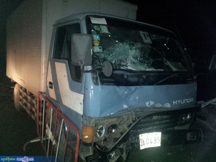 ខេត្តកណ្តាល ៖ បុរស ២នាក់ បានស្លាប់ភ្លាមៗនៅនឹងកន្លែងក្នុងករណីគ្រោះថ្នាក់ចរាចរណ៍រថយន្តបុកម៉ូតូ ដែលបានកើតឡើងកាលពីវេលាម៉ោង ៨ និង ១០នាទី យប់ថ្ងៃទី១២ មិថុនា ២០១៣ នៅតាមបណ្តោយផ្លូវជាតិលេខ២ ក្នុងភូមិដើមមៀន សង្កាត់ដើមមៀន ក្រុងតាខ្មៅ ខេត្តកណ្តាល ។