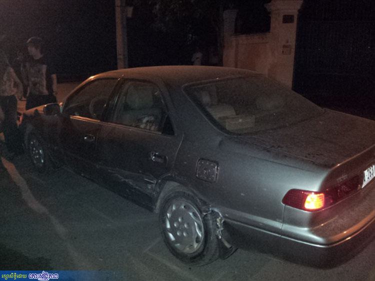 ឡិចស៊ីសជនជាតិចិនបើកបុកកាមរីឆ្លាមក្រពឹតទ្វារក្រោយ រួចបើករត់គេចសមត្ថកិច្ចចាប់ឃាត់បាន
