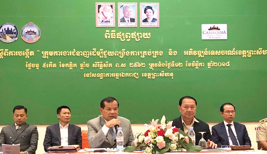 លោករដ្ឋមន្ត្រីបន្ដថា ដើម្បីពង្រឹងការគ្រប់គ្រងតំបន់ទេសចរណ៍ក្នុងខេត្តព្រះសីហនុឲ្យបានល្អ ក្រសួងបានបង្កើតក្រុមការងារចំនួន៥រួមមាន៖១-ក្រុមការងារជំរុញចលនាទីក្រុងស្អាត ។ ២-ក្រុមការងារពង្រឹងការគ្រប់គ្រងឧស្សាហកម្មទេសចរណ៍ (រួមទាំងការពង្រឹងគុណភាពសេវាកម្ម ដើម្បីទទួលទេសចរចិន China Ready Accreditation System ។ ៣-ក្រុមការងារពង្រឹងការគ្រប់គ្រងឆ្នេរ ។ ៤-ក្រុមការងារជំរុញបណ្ដុះបណ្ដាលជំនាញវិជ្ជាជីវៈទេសចរណ៍ ។ ៥-ក្រុមការងារពិនិត្យ និងរៀបចំកែសម្រួលរចនាសម្ព័ន្ធគ្រប់គ្រងរបស់មន្ទីរទេសចរណ៍ខេត្តព្រះសីហនុ ។
