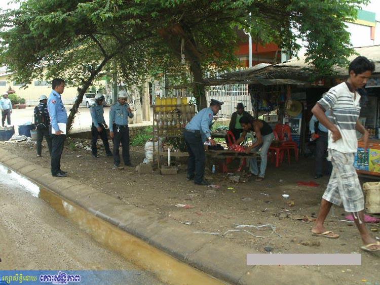 ក្រុងប៉ោយប៉ែត ៖ លោកអនុសេនីយ៍ទោសៅ សារឿន នាយផ្នែកចរាចរណ៍សណ្តាប់ធ្នាប់សាធារណៈក្រុងប៉ោយប៉ែត បានទទួលបញ្ជាពីលោកវរសេនីយ៍ត្រីអ៊ុំ សុផល អធិការនគរបាលក្រុងប៉ោយប៉ែត នៅព្រឹកថ្ងៃទី១៣ មិថុនា ២០១៣ នេះ ចុះរៀបចំសណ្តាប់ធ្នាប់តាមដងផ្លូវជាតិលេខ៥ តាមបណ្តាតូបដែលមានលក់សម្ភារប្រើប្រាស់ដូចជា តូបហ្គាស និងគ្រឿងសំណង់នានា ។ល។ តាម