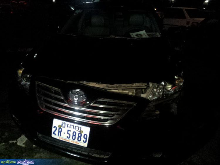 រាជធានីភ្នំពេញ ៖ រថយន្តកាមរីហាយប្រ៊ីត ពណ៌ខ្មៅ ១គ្រឿង ពាក់ស្លាកលេខ ភ្នំពេញ 2R-5889 បានធ្វើដំណើរតាមបណ្តោយផ្លូវ១៨២ ក្នុងទិសដៅពីកើតទៅលិច លុះមកដល់ចំណុចកែងផ្លូវព្រះមុនីវង្ស ក៏បានបុកជាមួយម៉ូតូធុនធំ ពណ៌ក្រហម ១គ្រឿង អត់ស្លាកលេខ បើកបរដោយជនជាតិអាមេរិកាំងម្នាក់ បណ្តាលឱ្យម្ចាស់ម៉ូតូដួលបែកក្បាល និងរងរបួសស្មាខាងឆ្វេង ។