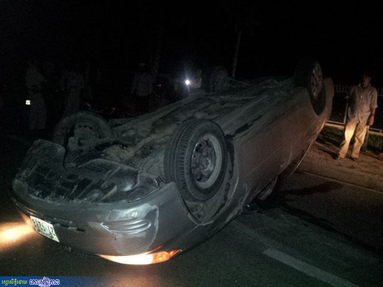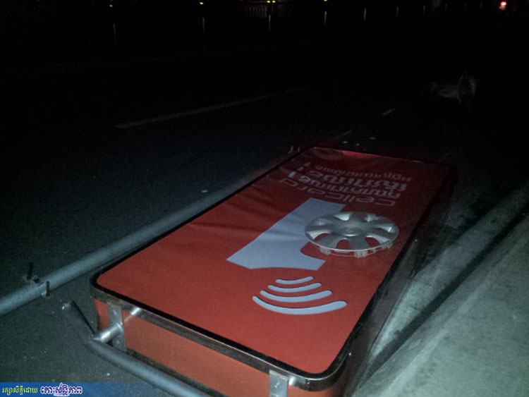 រថយន្តបាឡែនម្ចាស់ស្រវឹងបើកបុកបង្គោលភ្លើងបំភ្លឺក្បាលស្ពានអាកាស៧មករា ១ដើម បាក់រាបដល់ដី
