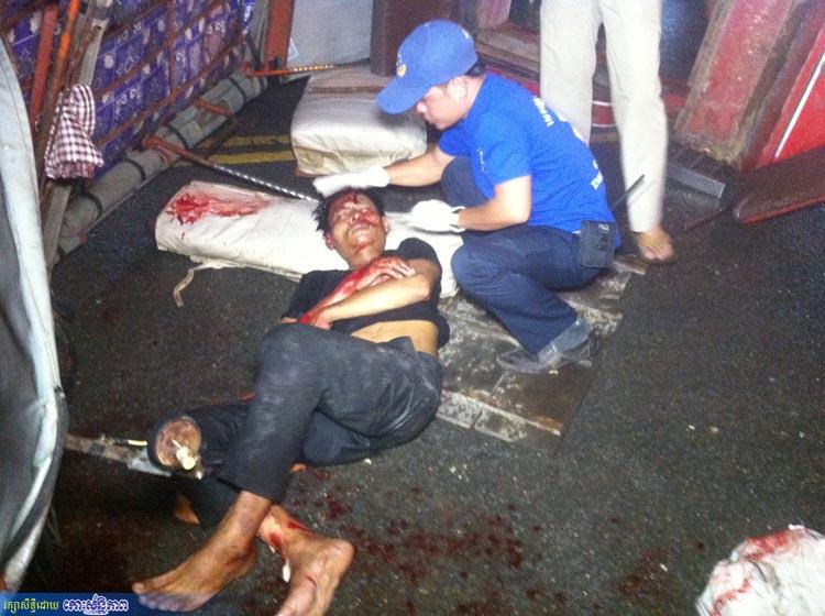 រាជធានីភ្នំពេញ ៖ បុរសម្នាក់ជាអ្នកបើករ៉ឺម៉កម៉ូតូបានរងរបួសធ្ងន់ ដោយសារហេតុការណ៍គ្រោះថ្នាក់ចរាចរណ៍បុកជាមួយរថយន្តវីហ្គោនៅចំណុចផ្លូវលេខ៤៣២ កែងផ្លូវលេខ២៧១ ក្នុងសង្កាត់ទួលទំពូង២ ខណ្ឌចំការមន កាលពីវេលាម៉ោង៩យប់ ថ្ងៃទី១៣ មិថុនា ។