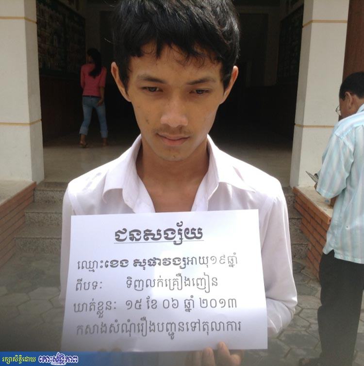 ជនសង្ស័យដែលត្រូវកម្លាំងប៉េអឹមឃាត់ខ្លួន ម្នាក់ឈ្មោះហេង សុផាវង្ស ភេទប្រុស អាយុ១៩ឆ្នាំ ជាសិស្សថ្នាក់ទី១១E វិទ្យាល័យសម្តេចឪ រស់នៅភូមិកសិកម្ម សង្កាត់ស្រង៉ែ ក្រុងសៀមរាប ត្រូវកម្លាំងប៉េអឹមឆ្មក់ចាប់បានកាលពីវេលាម៉ោង១០យប់ ថ្ងៃទី១៥ មិថុនា ២០១៣ នៅក្នុងផ្ទះជនល្មើសស្ថិតក្នុងភូមិខាងលើ ដកហូតបានម្សៅគ្រើមម៉ាទឹកកកពណ៌សចំនួន៨កញ្ចប់ ទូរស័ព្ទដៃ១គ្រឿង និងឧបករណ៍សម្រាប់ជក់មួយចំនួន និងម្នាក់ទៀតឈ្មោះឌួង ពុទ្ធិកា ភេទប្រុស អាយុ២០ឆ្នាំ ជាអ្នករត់ម៉ូតូឌុប មានស្រុកកំណើតនៅខេត្តបាត់ដំបង សព្វថ្ងៃស្នាក់នៅផ្ទះជួលនៅមុខផ្សារលើ ស្ថិតក្នុងភូមិបន្ទាយចាស់ សង្កាត់ស្លក្រាម ក្រុងសៀមរាប ត្រូវកម្លាំងប៉េអឹមឃាត់ខ្លួននៅចំណុចស្តុបកោះកេរិ៍្តវេលាម៉ោង៨យប់ ថ្ងៃទី១៥ មិថុនា ២០១៣ ដកហូតបានម្សៅគ្រើមសថ្លា១កញ្ចប់ និងម៉ូតូវីវ៉ាពណ៌ខ្មៅ១គ្រឿង។