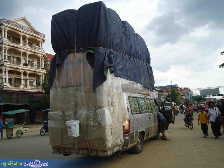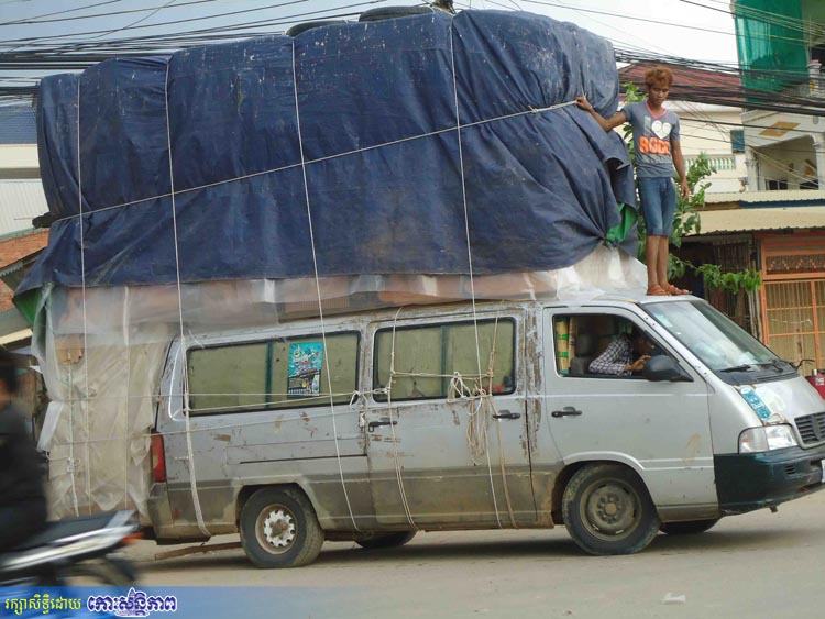 ខេត្តបន្ទាយមានជ័យ ៖ ពិតជាគួរឱ្យកោតសរសើរមែន ខណៈរថយន្តប្រភេទ១២កៅអីមួយគ្រឿង(ទួរីស) បានផ្ទុកទំនិញយ៉ាងខ្ពស់ត្រដែតមើលទៅប្រៀបដូចរថយន្តកាម៉ាស្សដឹកឥវ៉ាន់អ៊ីចឹងបានបើកបរតាមបណ្តោយផ្លូវជាតិលេខ៥ពីប៉ោយប៉ែតឆ្ពោះទៅទីរួមខេត្តបន្ទាយមានជ័យទំនងជាទៅកាន់ទីក្រុងភ្នំពេញផងក៏មិនដឹងទាំងកណ្តាលថ្ងៃ ដោយមិនខ្លាចសមត្ថកិច្ចឡើយ ។