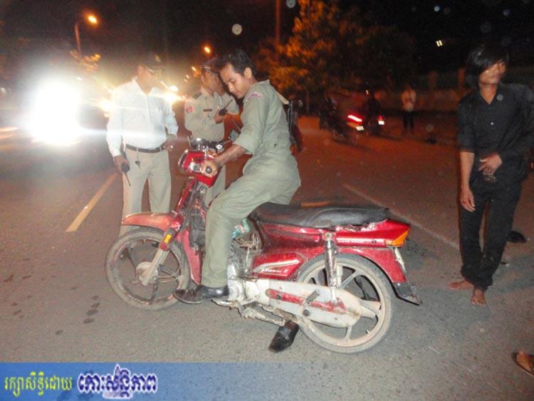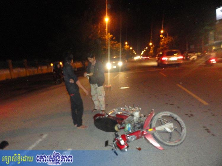 រាជធានីភ្នំពេញ៖ បុរស៣នាក់ស្រវឹងជោកជាំជិះម៉ូតូសេ១០០ ពណ៌ក្រហម ស៊េរីចាស់ ទៅបុកជាមួយម៉ូតូមួយគ្រឿងទៀត មិនចាំម៉ាកអ្វី បានរងរបួសធ្ងន់ម្នាក់ ស្រាល២នាក់ ក្រោយពេលកើតហេតុម៉ូតូមួយគ្រឿងទៀតនោះបានបើកគេចទៅបាត់។