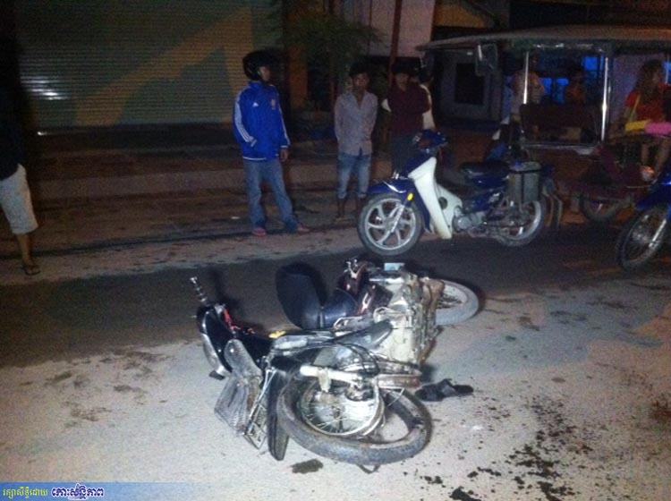ម៉ូតូទាំងពីរគ្រឿងដែលបើកបុកគ្នាពេញទំហឹងនោះមួយគ្រឿងមា៉កសង់កូរ៉េសេ១០០ ពណ៌ក្រហម អត់ស្លាកលេខ បើកបរដោយយុវជនម្នាក់មិនស្គាល់ឈ្មោះ ចំណែកម៉ូតូមួយគ្រឿងទៀតមា៉កហុងដាឌ្រីមសេ១២៥ ពណ៌ខ្មៅ ពាក់ស្លាកលេខតាកែវ 1D-5065 ជិះគ្នាពីរនាក់ ហើយអ្នកបើកបរមិនបានស្គាល់ឈ្មោះ ។