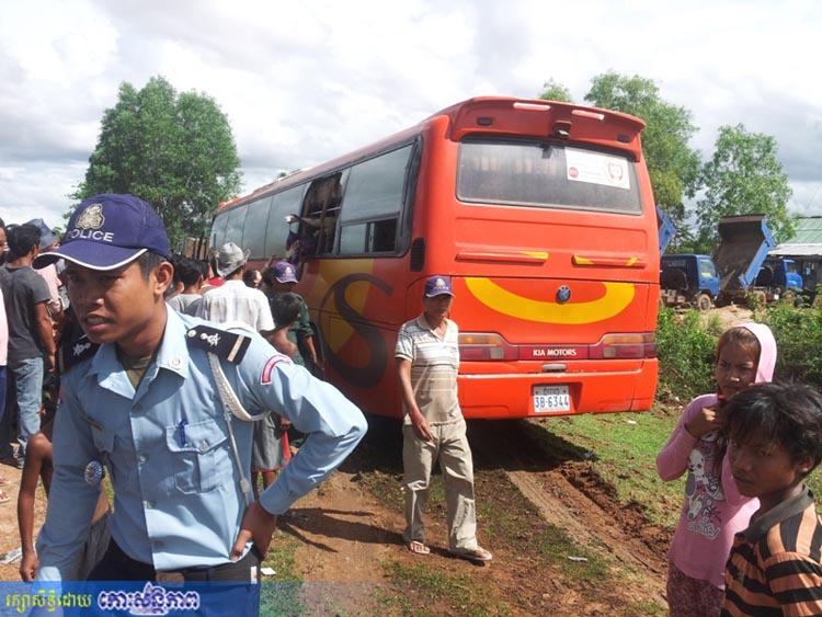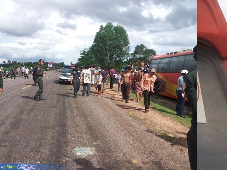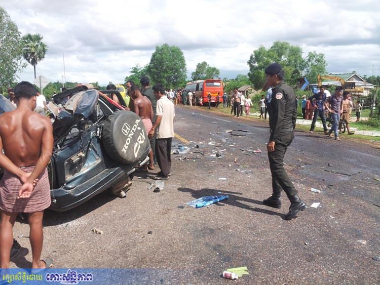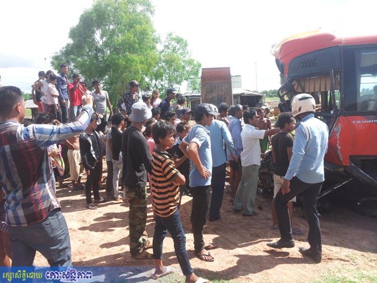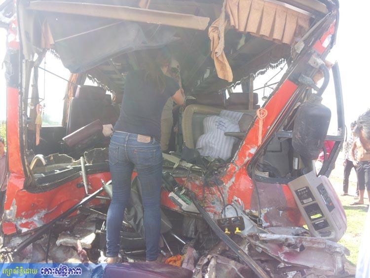 រថយន្តក្រុងបើកបុកគ្នាជាមួយស៊ីអ័រវីស្លាប់៤ និងរបួស៧នាក់នៅស្រុកស្ទោង