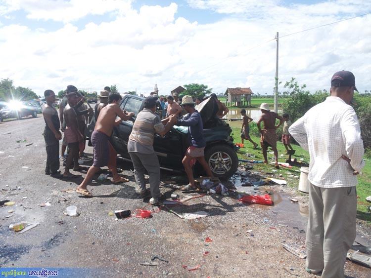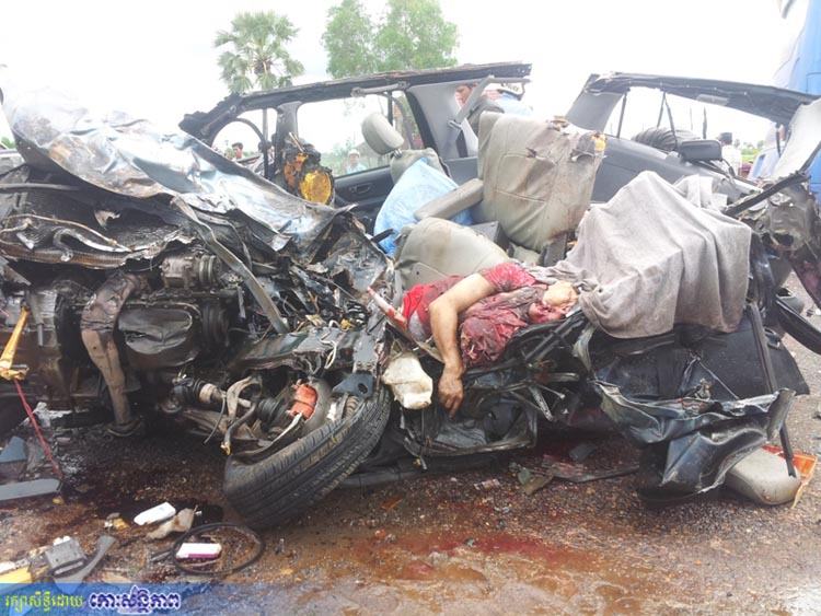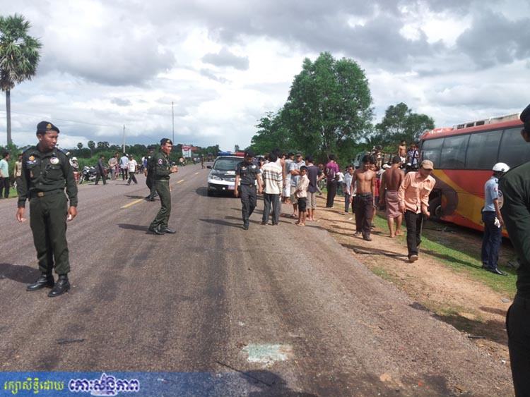 ខេត្តកំពង់ធំ៖ មនុស្ស៤នាក់បានស្លាប់ភ្លាមៗនៅនឹងកន្លែង និងជាច្រើននាក់ទៀតរងរបួសក្នុងហេតុការណ៍គ្រោះថ្នាក់ចរាចរណ៍រវាងរថយន្តក្រុងអូឡាំពិកពាក់ស្លាកលេខភ្នំពេញ 3B 6344 បើកបុកគ្នាជាមួយរថយន្តស៊ីអ័រវីព៌ណស្លែ ពាក់ស្លាកលេខភ្នំពេញ 2B 2796 នៅតាមបណ្តោយផ្លូវជាតិលេខ៦ ស្ថិតក្នុងភូមិព្រះនង្គ័ល ឃុំចំណារស្រុក ស្រុកស្ទោង វេលាម៉ោង២និង១៥នាទីរសៀលថ្ងៃទី១៨ មិថុនា ២០១៣ ។