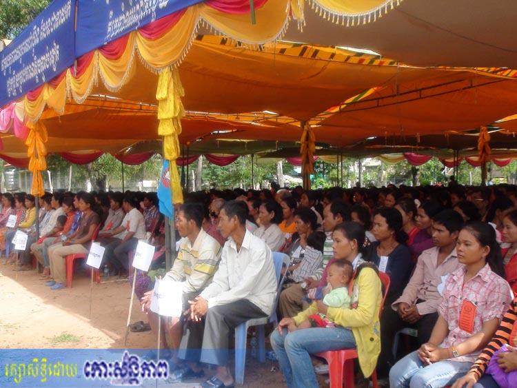ខេត្តកំពង់ធំ៖ ពិធីសំណេះសំណាល និងទទួលស្គាល់សមាជិកគណបក្សប្រជាជនថ្មី កាលពីព្រឹកថ្ងៃទី១៨ មិថុនា ២០១៣ នៅទីស្នាក់ការគណបក្សប្រជាជនស្ថិតក្នុងឃុំព្រៃគុយ ស្រុកកំពង់ស្វាយ។