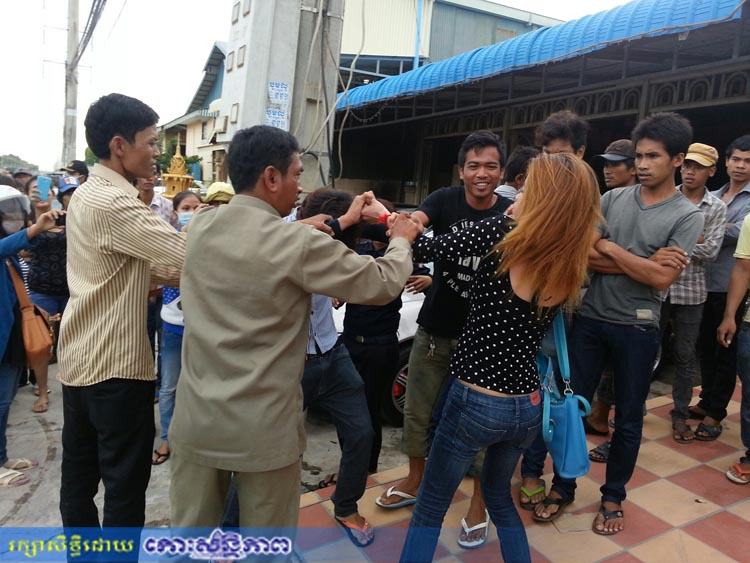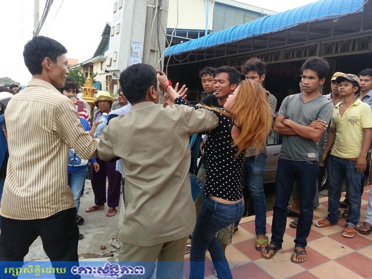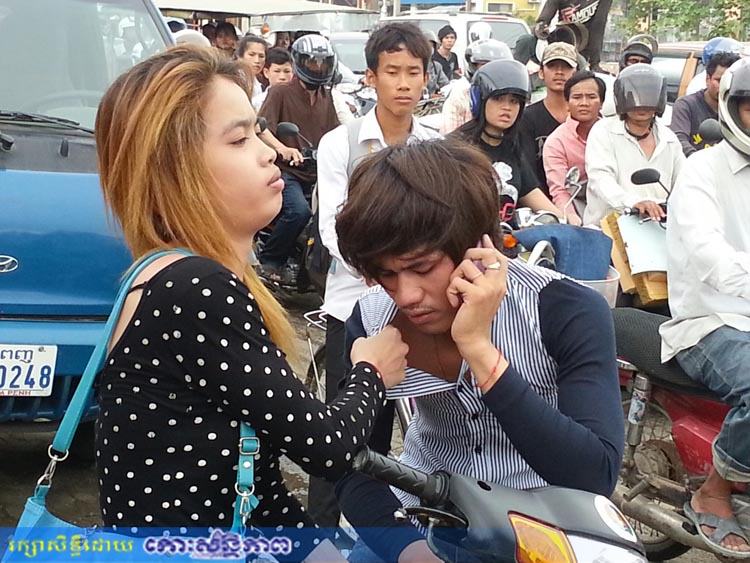 រាជធានីភ្នំពេញ៖ គូសង្សារវ័យក្មេងមួយគូ ខណៈកំពុងជិះម៉ូតូតាមដងផ្លូវទាស់សម្តីគ្នាបន្តិចបន្តួចបានឈប់ម៉ូតូឈ្លោះប្រកែកគ្នា ដោយខាងនារីជាគូស្នេហ៍ចាប់ក្របួច.កអាវបុរសជាសង្សារប្រវាយប្រតប់គ្នា ផ្អើលអ្នកដំណើរតាមផ្លូវចោមរោមមើលឈូឆរ កាលពីវេលាម៉ោង៤និង៤០នាទីរសៀលថ្ងៃទី១៩ មិថុនា ២០១៣ នៅតាមបណ្តោយផ្លូវ២០០៤ (ម៉ៃដា) ភូមិត្រពាំងឈូក សង្កាត់ទឹកថ្លា្ ខណ្ឌសែនសុខ ។