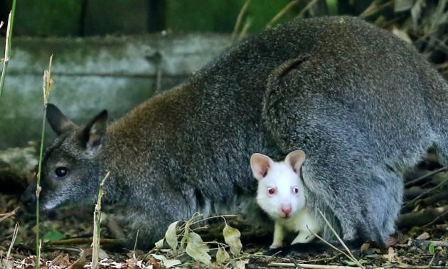 កូនកង់ហ្ការូភឿកមួយក្បាលបង្ហាញមុខពីក្នុងថង់ពោះរបស់មេ នៅឯឧទ្យានសត្វក្រុងឌុយប៊ើក ភាគខាងលិចប្រទេសលីម៉ង ។ កង់ហ្ការូជាសត្វមួយប្រភេទមានជម្រករស់នៅក្នុងប្រទេសអូស្ត្រាលី និងជានិមិត្តរូបរបស់ប្រទេសនេះ ។