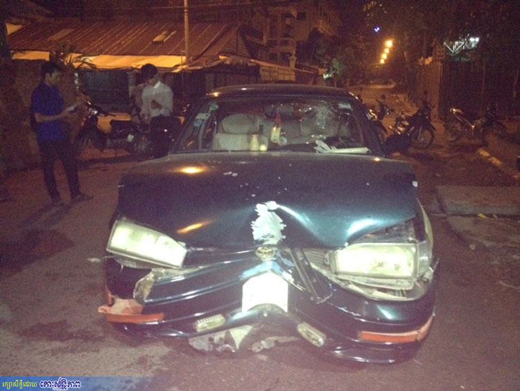 ហេតុការណ៍នេះ បានកើតឡើងកាលពីវេលាម៉ោង ១ និង ៤០នាទី យប់រំលងអាធ្រាត្រឈានចូលថ្ងៃទី២១ មិថុនា ២០១៣ នៅចំណុចខាងកើតស្ពានអាកាស៧មករា ក្នុងសង្កាត់ទឹកល្អក់ទី១ ខណ្ឌទួលគោក ។ អ្នកបើកបរមានឈ្មោះ ឃុត សុខរី អាយុ ៣២ ឆ្នាំ ជាអ្នកបើកបររថយន្តតាក់ស៊ីដឹកភ្ញៀវនៅព្រលានយន្តហោះ ស្នាក់នៅផ្ទះលេខ៨០១ ផ្លូវលំ សង្កាត់ឫស្សីកែវ ខណ្ឌឫស្សីកែវ ។ ក្រោយកើតហេតុ រថយន្តបង្កត្រូវសមត្ថកិច្ចជំនាញនាំយកទៅរក្សាទុកនៅការិយាល័យចរាចរណ៍ជើងគោករាជធានីភ្នំពេញ ដើម្បីធ្វើការដោះស្រាយតាមផ្លូវច្បាប់ ៕