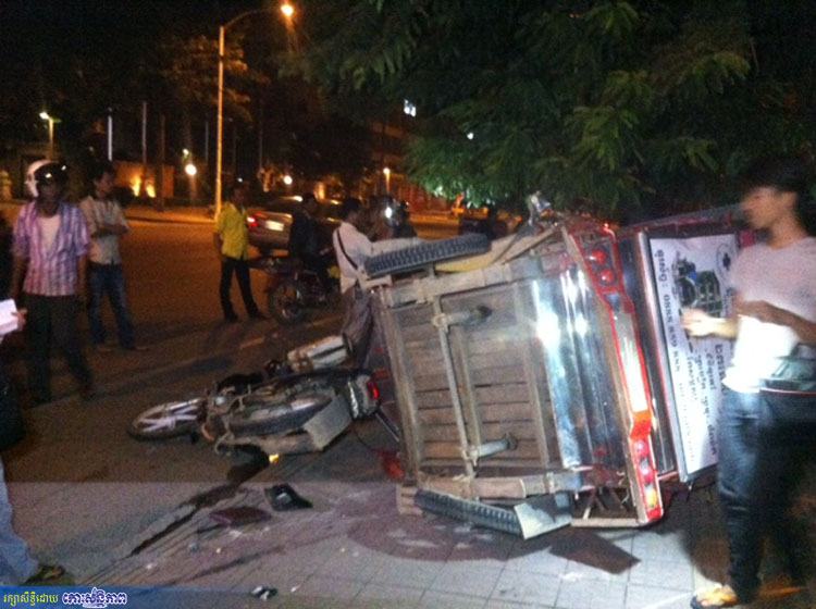 រាជធានីភ្នំពេញ ៖ បុរសម្នាក់បានរងរបួសធ្ងន់ត្រូវបញ្ជូនទៅសង្រ្គោះនៅមន្ទីរពេទ្យភ្លាមៗ ខណៈដែលរូបគាត់បើករ៉ឺម៉កម៉ូតូ ១គ្រឿង ធ្វើដំណើរតាមបណ្តោយមហាវិថីម៉ៅសេទុង លុះមកដល់ចំណុចមុខសណ្ឋាគារអ៊ីនធើខនកង់ទីណង់តាល់ ក៏ត្រូវរថយន្តម៉ាឌ្រិច ១គ្រឿង ពណ៌ខ្មៅ ពាក់ស្លាកលេខ ភ្នំពេញ 2P-9561 បើកបុកយ៉ាងពេញទំហឹង