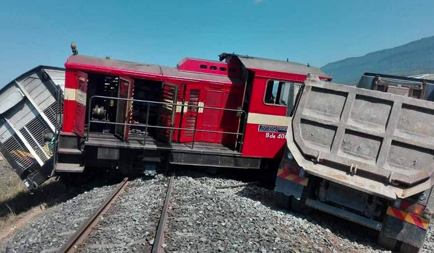 ស្រុកព្រៃនប់៖ សេចក្តីរាយការណ៍បឋមឱ្យដឹងថា មានករណីរថភ្លើងបានបុកជាមួយរថយន្តបែនដឹកដី មួយគ្រឿង បង្កការភ្ញាក់ផ្អើលយ៉ាងខ្លាំងនៅវេលាម៉ោងជាង១១ព្រឹកថ្ងៃ១១ កុម្ភៈ នេះ ស្ថិតនៅក្នុងភូមិទូល ឃុំទឹកថ្លា ស្រុកព្រៃនប់ ខេត្តព្រះសីហនុ ខណៈរថភ្លើងកំពុងបើកឆ្លងកាត់លើផ្លូវជាតិលេខ៣ ។