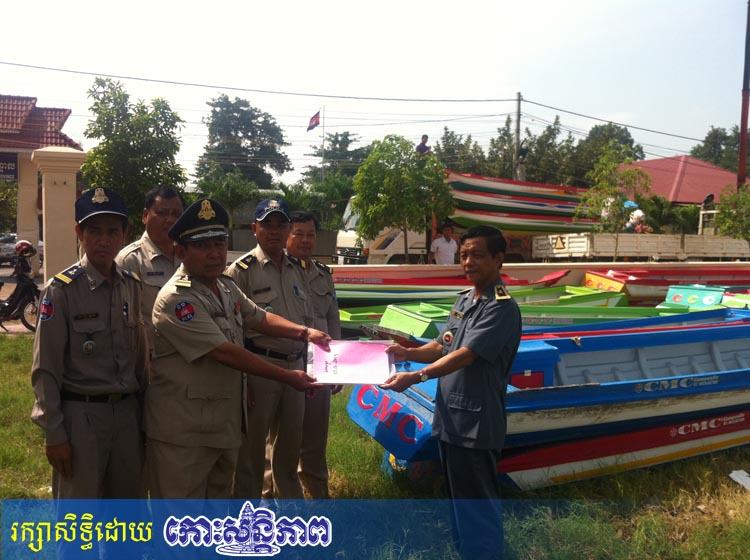 លោកទិត្យ វង្ស នាយការិយាល័យសេដ្ឋកិច្ចខេត្តបានឱ្យដឹងថា សម្ភារដែលត្រូវប្រគល់ឱ្យស្នាក់ការគយរដ្ឋាករខេត្តកណ្តាលរួមមានប្រភេទទូកធ្វើពីស្មាច់(តាករ៉ាង) ចំនួន៥៥គ្រឿង មានខ្នាតផ្សេងៗគ្នា គឺប្រវែង៩,២ម៉ែត្រចំនួន២គ្រឿង ប្រវែង៨,៥ម៉ែត្រចំនួន៤គ្រឿង ប្រវែង៧,២ម៉ែត្រចំនួន៦គ្រឿង ប្រវែង៦,៩ម៉ែត្រចំនួន១៧គ្រឿង ប្រវែង៥,៧ម៉ែត្រចំនួន៣គ្រឿង ប្រវែង៦,១ម៉ែត្រចំនួន១៧គ្រឿង និងម៉ាស៊ីនសម្រាប់អូសទាញចំនួន២គ្រឿងម៉ាកហុងដា និងម៉ាកនីស្សាន់។