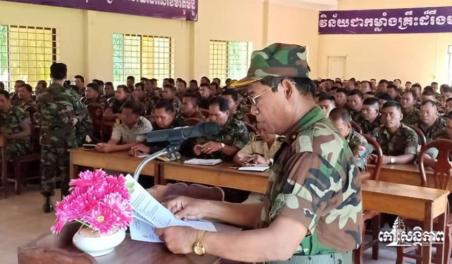 ខេត្តបាត់ដំបង ៖ «បើកវគ្គហ្វឹកហ្វឺនជំនាញស៊ើបការណ៍ ប្រដាប់អាវុធ វគ្គហ្វឹកហ្វឺនវាជាផ្នែកជំនាញដ៏មានសារសំខាន់ សម្រាប់កងយោធពលខេមរភូមិន្ទ បានធ្វើការអភិវឌ្ឍន៍ ធនធានមនុស្ស និងតាមរយៈការបង្កើន គុណភាព ហ្វឹកហាត់ និងបណ្តុះបណ្តាលយោធិនអាជីព ក្នុងគោលដៅកសាងកងកម្លាំងប្រដាប់អាវុធ វ័យក្មេង សម្រាប់បន្តវេន នាពេលអនាគត» ។