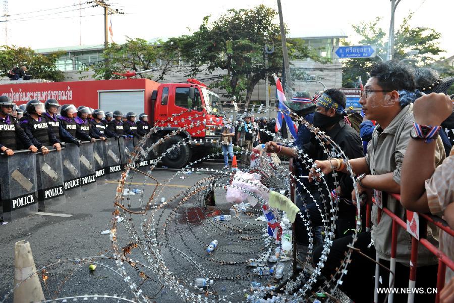 នៅក្រុងបាងកកប្រជាជនមួយចំនួនបានអំពាវនាវឱ្យមានអន្តរាគមន៍យោធាក្នុងប្រទេសមួយ ដែលជួបប្រទះនឹងរដ្ឋប្រហារ ឬការប៉ុនប៉ងធ្វើរដ្ឋប្រហារចំនួនដល់ទៅ១៨លើកមកហើយចាប់តាំងពីការបង្កើតរាជាណាចក្រអាស្រ័យរដ្ឋធម្មនុញ្ញពីឆ្នាំ១៩៣២ មក ដោយក្នុងចំណោមរដ្ឋប្រហារទាំងនេះមានរដ្ឋប្រហារមួយផ្តួលរំលំលោកថាក់ស៊ីន កាលពីឆ្នាំ២០០៦ ។ដើរអុកឡុកក្នុងក្រុងបាងកក ពួកបាតុករបានគ្រវីទង់ជាតិថៃ ហើយចុចស៊ីប្លេលាន់ទ្រហឹង។ បណ្តាវិថីនៅកណ្តាលក្រុងបាងកកក្លាយជាស្ងាត់ មានតែពួកបាតុករ ហើយក៏មានគំនរបេតុងរាំងខ្ទប់ច្រកចូលទាំងឡាយទៅកាន់វិមានរដ្ឋាភិបាល ។