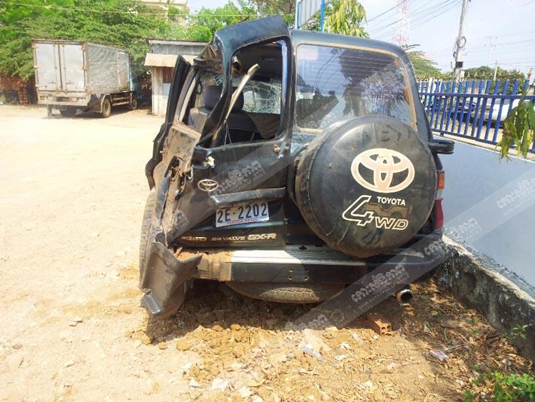 ខេត្តកំពង់ចាម ៖ រថយន្តម៉ាកឡង់គ្រីស័រស៊េរីចាស់មួយគ្រឿងពាក់ស្លាកលេខភ្នំពេញ2E-2202បានផ្ទុះកង់មុខខាងស្តាំរេចង្កូតទៅកៀរម៉ូតូពីរគ្រឿងនៅលើកំណាត់ផ្លូវជាតិលេខស្ថិតក្នុងភូមិទួលបេង ឃុំក្រឡា ស្រុកកំពង់សៀមបណ្តាលឱ្យអ្នកជិះម៉ូតូពីរនាក់របួសធ្ងន់ហើយរថយន្តបានរអិលធ្លាក់ចេញពីផ្លូវក្រឡាប់ជាច្រើនត្រលប់។ហេតុការណ៏នេះកើតឡើងនៅម៉ោង៧និង៣០នាទីល្ងាចថ្ងៃទី៧មិនា២០១៤ហេើយអ្នកបើកបររថយន្តរងរបួសធ្ងន់។