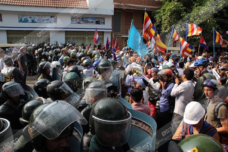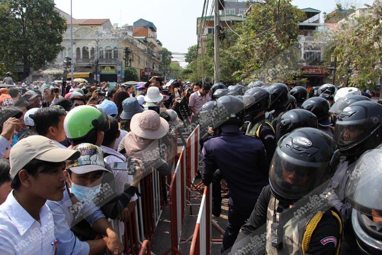 ទោះបីអត់ច្បាប់ក៏ពួកគេមានះនាំគ្នារៀបចំវេទិការសាធារណៈ ហើយត្រូវបានកម្លាំងសមត្ថកិច្ចចម្រុះដាក់កម្លាំងការពារ និងដាក់បារ៉ាស់ព័ទ្ធជុំវិញ និងមិនអនុញ្ញាតឱ្យប្រមូលផ្ដុំនៅលើទីលានប្រជាធិបតេយ្យឡើយ ធ្វើឱ្យកើតមានបរិយាកាសអាប់អួ ។ មន្ដ្រីសាលាខណ្ឌដូនពេញ ដែលតាមសភាពការណ៍នៅទីលានប្រជាធិបតេយ្យបានឱ្យដឹងថា នៅវេលាម៉ោងជាង៥ល្ងាចថ្ងៃទី៨ មីនា ដែលជាថ្ងៃប្រារព្ធទិវាអន្ដរជាតិនារី ៨ មីនា បារ៉ាស់នៅជុំវិញទីលានប្រជាធិបតេយ្យត្រូវបានសមត្ថកិច្ចដកចេញទៅវិញអស់ហើយ និងបានអនុញ្ញាតឱ្យធ្វើដំណើរជាធម្មតាឡើងវិញដែរ ក្រោយពីកម្មករ-កម្មការិនីដែលដឹកនាំដោយសហព័ន្ធសហជីព និងសមាគមទាំង១៨នោះមានចរិតលាយឡំនឹងនយោបាយ ព្យាយាមសម្រុកចូលទីលានប្រជាធិបតេយ្យរៀបចំវេទិកាសាធារណៈ ។ ដោយឡែក សហគមន៍បឹងកក់ ថ្មគោល បុរីកីឡា និងសហគមន៍ផ្សេងៗដែលចេតនាដង្ហែក្បួនទាំងគ្មានការអនុញ្ញាតពីសាលារាជធានីភ្នំពេញ ទៅកាន់ក្រសួងកិច្ចការនារី ដើម្បីដាក់ញត្ដិក៏ត្រូវកម្លាំងសមត្ថកិច្ចរារាំងមិនឱ្យដង្ហែក្បួនចេញដែរ ។