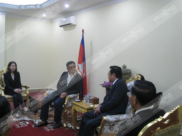 ថ្លែងក្នុងជំនួបទ្វេភាគីជាមួយលោក Michael Kobori អគ្គនាយករងក្រុមហ៊ុន Levi Strauss & Co ដែលជាក្រុមហ៊ុនបញ្ជាទិញសម្លៀកបំពាក់របស់សហរដ្ឋអាេមរិកដ៏ធំមួយពីកម្ពុជា លោករដ្ឋមន្ត្រី អិុត សំហេង មាន ប្រសាសន៍ថា បន្ទាប់ពីមានការខិតខំប្រឹងប្រែងសម្របសម្រួលជាមួយភាគីខាងនិយោជក នៅថ្ងៃទី៣១ ធ្នូ ឆ្នាំ២០១៣ រាជរដ្ឋាភិបាលកម្ពុជា បានសម្រេចដំទ្បើងប្រាក់ឈ្នួលដល់កម្មករនិយោជិត វាយនភ័ណ្ឌកាត់ដេរ និងផលិតស្បែកជើងនៅកម្ពុជាពីប្រាក់ឈ្នួល៩៥ដុល្លារ ដល់១០០ដុល្លារ ។ លោកបានស្តីបន្ទោសថា ដោយសារតែមានការលូកដៃចូលពីគណបក្សនយោបាយ និងសហជីពខ្លះ បានបន្តអូសទាញនិងបង្ខំកម្មករឱ្យធ្វើបាតុកម្មកាន់តែខ្លាំងក្លាទ្បើង ទើបមានការប៉ះទង្គិចគ្នា កាលដើមខែមករា កន្លងទៅ ដែលបណ្តាលឱ្យមនុស្ស៥នាក់ស្លាប់ និងជាច្រើននាក់ទៀតរងរបួស ចំណែក២៣នាក់ត្រូវបានឃាត់ខ្លួន តែរហូតមកដល់ពេលនេះ បានដោះលែង២នាក់ហើយ ។ លោករដ្ឋមន្ត្រីបានបង្ហាញជំហរថា ទោះជាយ៉ាងនេះក្តី រាជរដ្ឋាភិបាលនៅតែបង្ហាញឆន្ទៈក្នុងការដោះស្រាយបញ្ហាប្រាក់ឈ្នួលបន្ត ។