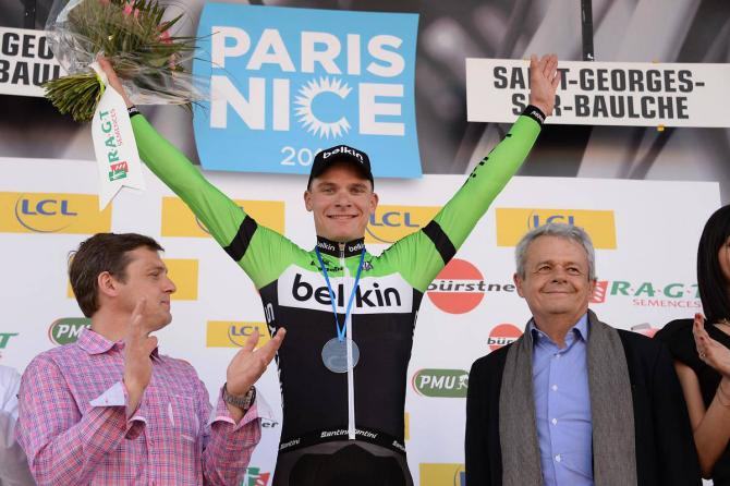 កីឡាករជំនាញខាងជិះឡើងភ្នំរបស់ហូឡង់ Moreno Hofland បានសម្តែងនូវក្តីរីករាយជាខ្លាំង បន្ទាប់ពីបានយកឈ្នះណាក់ទី២ប្រណាំងកង់កម្មវិធី Paris-Nice កាលពីថ្ងៃចន្ទទី១០ ខែមីនា ។ ការប្រណាំងក្នុងដំណាក់នេះត្រូវបានបញ្ចប់នៅទីប្រជុំជន Saint-Georges-sur-Baulche ប្រទេសបារាំង ។