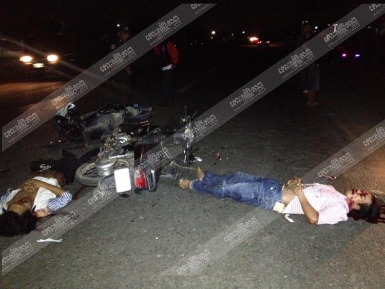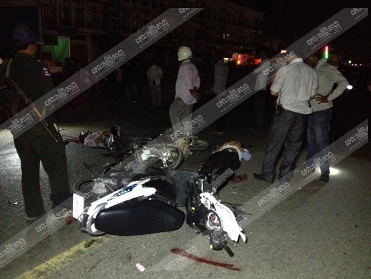 យោងតាមប្រភពព័ត៌មានបានឱ្យដឹងថា មុនពេលកើតហេតុម៉ូតូស៊ុយហ្ស៊ូគីណិច ពណ៌ស មួយគ្រឿង ពាក់ស្លាកលេខភ្នំពេញ1BV-1623 ជិះដោយយុវជនម្នាក់ ធ្វើដំណើរពីទិស ខាងលិចមកកើត មកដល់ចំណុចកើតហេតុក៏បានបុកគ្នាជាមួយម៉ូតូហុងដាសេ១២៥ ពណ៌ខ្មៅ ពាក់ស្លាកលេខភ្នំពេញ 1AT-4539 ជិះដោយយុវជនម្នាក់មិនស្គាល់អត្តសញ្ញាណ ក្នុងទិសដៅពីលិចទៅកើតស្របទិសគ្នា និងបានបុកគ្នា យ៉ាងពេញទំហឹងលាន់សូរដូចរន្ទះ បណ្តាលឱ្យអ្នកបើកបរទាំងពីរនាក់ បែកមុខបែកមាត់ ផុងលលាក្បាលស្លាប់យ៉ាងអាណោចអធម។