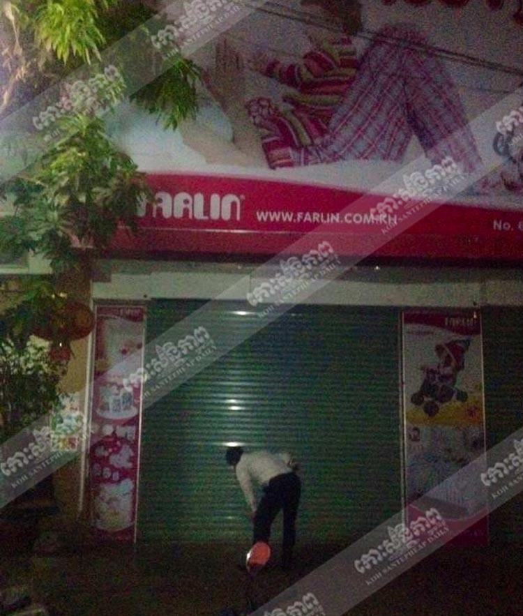 រាជធានីភ្នំពេញ ៖ ហាងលក់ខោអាវកូនក្មេងយីហោ «បេប៊ីប្រេន» ដែលមានទីតាំងផ្ទះលេខ៦៥-៦៧អឺសូន្យ ផ្លូវលេខ៥៣ ភូមិទី២ សង្កាត់ផ្សារថ្មីទី១ ខណ្ឌដូនពេញ ត្រូវខ្មាន់កាំភ្លើងមិនស្គាល់អត្តសញ្ញាណបើករថយន្ដស៊េរីទំនើបម៉ាកអូឌីមួយគ្រឿង ពណ៌ខ្មៅ គ្មានស្លាកលេខ ឈប់នៅផ្លូវ ហើយបាញ់ជាច្រើនគ្រាប់សំដៅចូលក្នុងហាង បង្កឱ្យភ្ញាក់ផ្អើលកាលពីវេលាម៉ោង១០ និង៤៥នាទីយប់ថ្ងៃទី