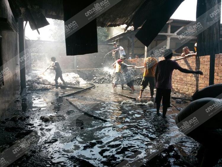 ខេត្តកណ្តាល៖ ឃ្លំាងស្តុកកំទេចកំណាត់ និងសំឡីគ មួយកន្លែង ស្ថិតនៅក្នុងភូមិព្រែកសំរោង២ សង្កាត់តាខ្មៅ ក្រុងតាខ្មៅ បានត្រូវអគ្គិភ័យបំផ្លាញទំាងស្រុង ។