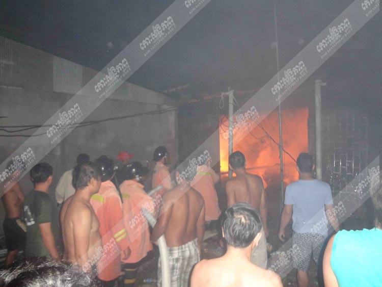 អគ្គិភ័យកំពុងឆេះឃ្លាំងស្តុកគីប (ខោអាវជជុះ) នៅក្រុងប៉ោយប៉ែត