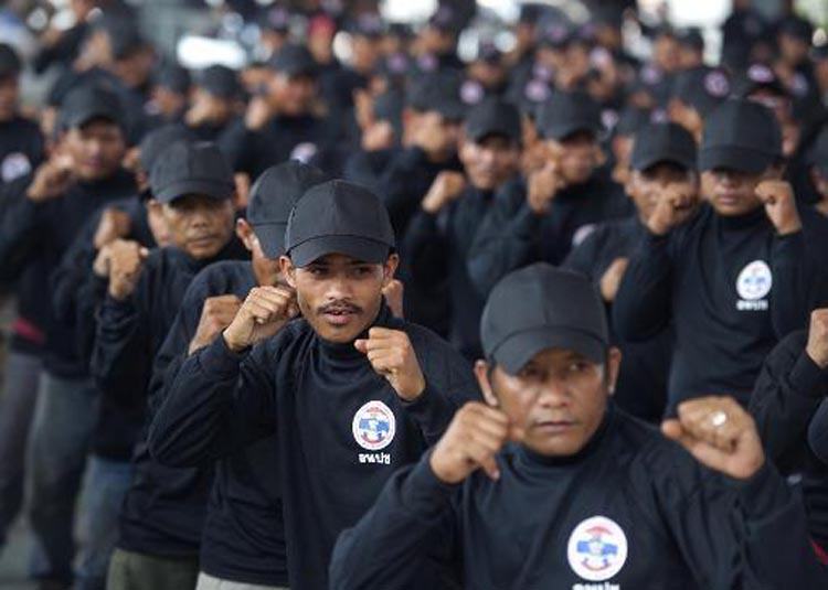 ប្រមុខក្រុមអាវក្រហម លោក ចតុពន ប្រូមប៉ាន នៅមុខក្រុមអ្នកកាសែតឯកន្លែងធ្វើបាតុកម្មបានប្រមានថា ប្រសិនបើពួកប្រឆាំងនៅតែរឹងរូសហើយឈានទៅតែងតាំងនាយករដ្ឋមន្ត្រីអព្យាក្រឹត១រូប និងរៀបចំរដ្ឋប្រហារមួយនោះពួកអាវក្រហមនឹងប្រឆាំងដោយប្រើកម្លាំង ។ លោកនិយាយថា ខ្ញុំចង់ឱ្យប្រទេសមានលទ្ធិប្រជាធិបតេយ្យ ។