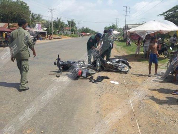 ប្រភពព័ត៌មានពីសមត្ថកិច្ចបន្តថា គ្រោះថ្នាក់នេះកើតឡើងដោយម៉ូតូហុងដា ស្កុបពីពាក់ស្លាកលេខ បន្ទាយមានជ័យ1l-1878 បើកដោយឈ្មោះ អិន ភារម្យ ទៅបុកម៉ូតូហុងដាឌ្រីមពាក់ស្លាកលេខបន្ទាយមានជ័យ 1L-4184 បើកដោយឈ្មោះ ផែន រ៉ូបៀបណ្តាលឱ្យរបួសធ្ងន់ស្រាល០២នាក់ ឯម៉ូតូខូចមធ្យម ។