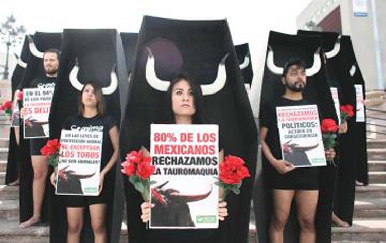 សមាជិកAnimanatralis ជាសកម្មជនការពារសត្វនាំគ្នាពាក់ស្នែងគោជល់ឈរនៅក្បែរមឈូសពណ៌ខ្មៅ និងកាន់បដាប្រឆាំង ។ នៅក្នុងបដាសរសេរពាក្យថា «មិុកសិុកបដិសេធលើកីឡាប្រយុទ្ធជាមួយគោជល់»នៅអេស្ប៉ាញ ។