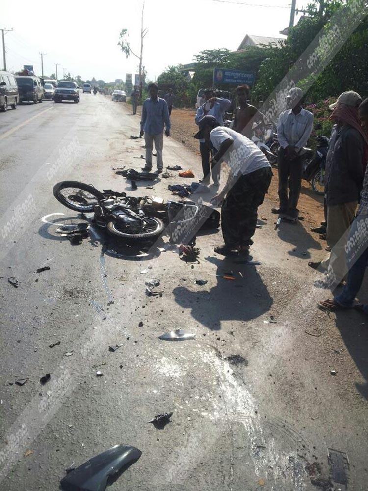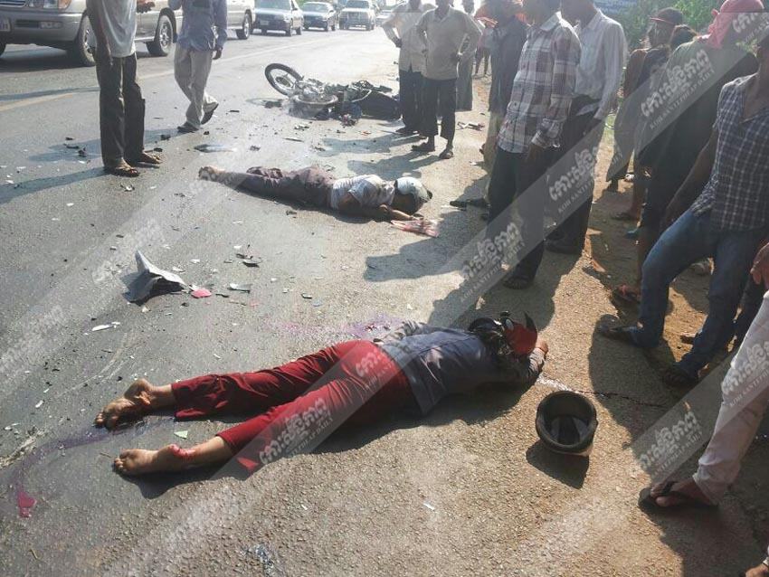 ខេត្តកណ្តាល ៖ យ៉ាងហោចណាស់០២នាក់ប្តី-ប្រពន្ធស្លាប់និងកូនស្រីម្នាក់របួស ក្នុងហេតុការណ៏គ្រោះថ្នាក់ចរាចរណ៏រថយន្តបើកបុកម៉ូតូ កាលពីវេលាម៉ោង ៣និង២០នាទី រសៀលថ្ងៃទី ១០មេសា ២០១៤ នៅចំណុចផ្លូវជាតិលេខ៥ ចន្លោះគីឡូម៉ែត្រលេខ ៣៤-៣៥ ស្ថិតនៅក្នុងភូមិខ្លាត្រាំ ឃុំកំពង់លួង ស្រុកញញ្ញាឭ ខេត្តកណ្តាល។
